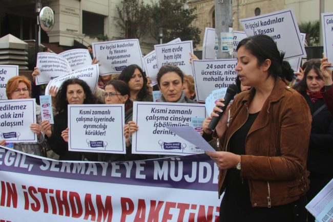BU PAKET KADINLARA DEĞİL, SERMAYEYE MÜJDE! Kadın Emeği Platformu olarak, Kadın İstihdamı Paketi’ni protesto etmek için İstanbul Ticaret Odası’nın önündeydik… [fancygallery id=”1″ album=”14″]BU PAKET KADINLARA…
