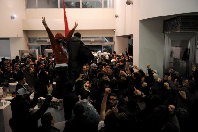 Türkiye Gazeteciler Sendikası’nın yöneticileri ve Zaman gazetesindeki üyeleri, bina önünde açıklama yaparak kayyım heyetinin çalışanların iş güvencesine dokunmamasını istedi. Polis ablukası altında kameraların karşısına geçen Genel Sekreter…