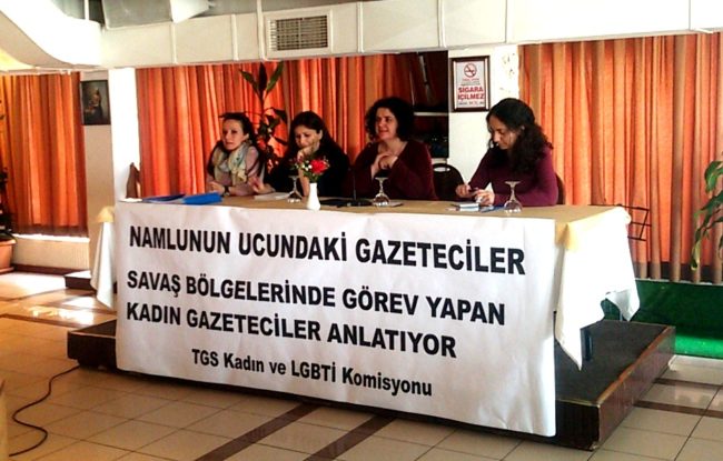 Savaş bölgelerinde çalışan kadın gazetecilerin yaşadıklarını konu alan ‘Namlunun ucunda gazeteciler/Savaş bölgelerinde görev yapan kadın gazeteciler anlatıyor’ başlıklı raporumuzu bugün İstanbul Cağaloğlu’nda bulunan TGC Lokali’nde…